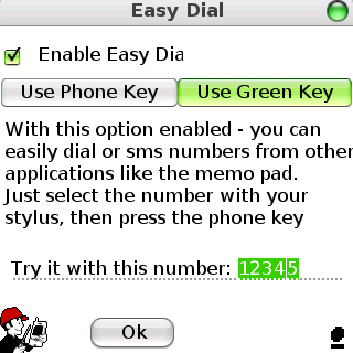 In cases where a phone number embedded in an email, memo or some other record where the number isn't hyperlinked for automatic dialing, Easy Dial allows you to highlight the number with the stylus and call or text it without having to copy and paste. You can set either the Talk button or the Phone button to launch the call or SMS.