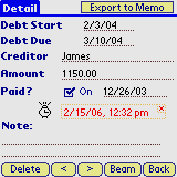 - Record your debt starting date, due date, creditor, debt amount and the payment status.