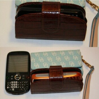 My Treo Pro also fits in my Rex Regina case. The case I have is a faux crocodile type and I don't see it in the store now. But they do have the RexRegina Stanton Classic which is almost the same as my RexRegina, minus the faux crocodile material. My Treo Pro fits nicely in the RexRegina too. Above, you can see my Treo Pro inside the case as well as a pic of my Treo 680 inside the case. I bought the case for the 680. Oh yeah, see that blue case hiding in the pics? That's the Dooney & Bourke that I recently reviewed, and my Treo Pro fits nicely in that case also.