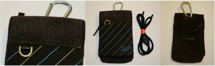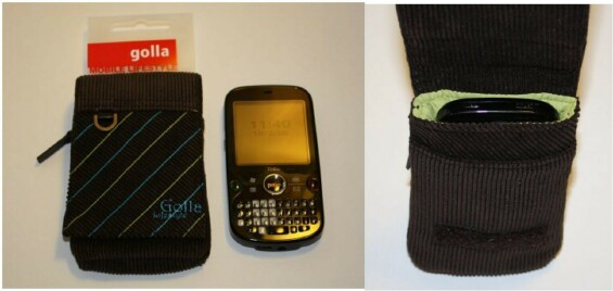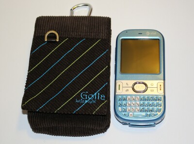 Well, what a coincidence! As I was writing this article, UPS arrived and delivered this Golla Trail Pouch that I'd ordered ($19.95) for my Treo Pro. Sweet! I love how this case looks! I love the soft polyester/nylon material. It looks and feels just like corduroy. And I love the colors on the case. The overall color is a rich, chocolatey brown and the flap has blue and green stripes, plus the words "Golla Lifestyle". The inner lining is also a polyester/nylon blend and is soft so that your device won't get scratched going in and out of the case. The inner lining is a pale green color that matches the pale green stripes on the front of the top flap.