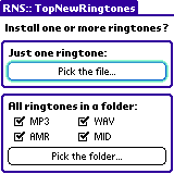 Want a way to turn your tunes on your storage card into personalized ringtones? Then use TopNewRingtones, by RNS:: to do just that!