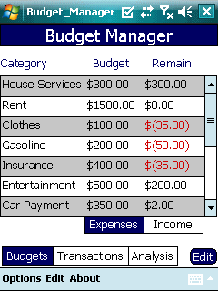 - With Budget Manager you can easily plan and create budgets to track you expenses, your incomes and your savings. With the Budget summary screen you can easily monitor your budgets and compare the current month to your last month information. With the Transactions screens it is simple and fast to mange your transactions, assign them to your budgets, and view them by budget and/or time periods.
