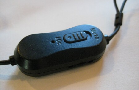 Tracing down the wires, we arrive at the inline controller. The controls are spare and simple. The front face features a call answer/end button. Music automatically suspends on an incoming call and resumes on its disconnection.