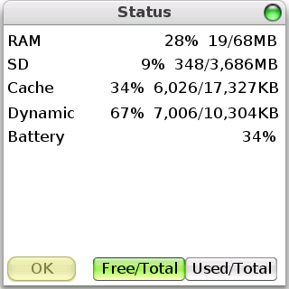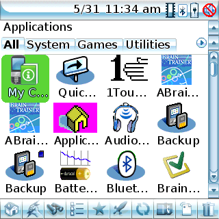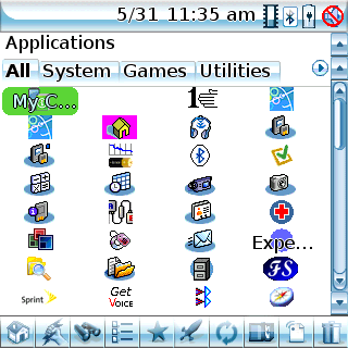 Initiate starts in the Applications View, which is similar to the native Palm launcher. The status icons are also similar, but only function as single block. In other words, tapping the Bluetooth icon doesn't take you to the Bluetooth app; all of the icons open a Status page that numerically reports RAM, SD, Cache, Dynamic Memory, and Battery usage. The whitespace on the left of the row shows the letters you type as you're searching for a file or app. Below this is a row that shows you which view you're in. The views are explained shortly.