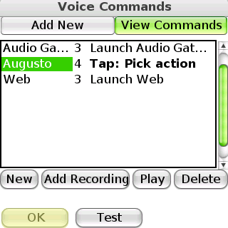 According to the manual, you can configure Initiate to voice dial and voice launch without the actual launcher open, but I couldn't find the trigger setting in the "Launching Initiate" preferences where this was supposed to be changed. By default, the side button is supposed to trigger voice control, but I have that mapped to Blazer, and I like it that way. To complete this review, I changed the side button to launch Initiate and set a voice tag for Web (Blazer) and a couple of phone numbers.