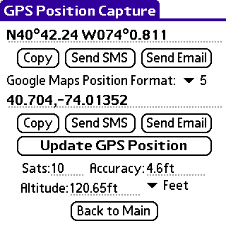 - When you send your position to another phone, the end user can enter the coordinates right into Google Maps or Google Earth and see your exact position. If the other phone is a Treo, they can see your position in Google Maps for Palm OS!