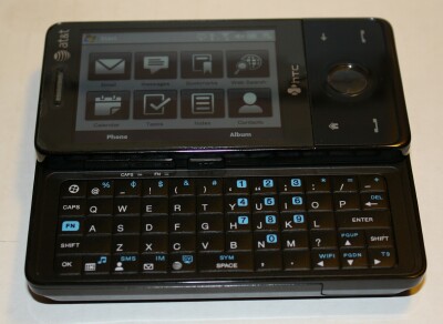 The Fuze has a slide-out QWERTY keyboard. A lot of people don't care for slide-out keyboards, but as I mentioned in the 1st Round Robin, I like them. I think they have a certain cool factor, being all hidden away like they are. Besides looking great, the Fuze keyboard has lots of features on it. There are dedicated shortcut keys for Email, Internet, Contacts, and Calendar. And there are Fn shortcuts for IM, SMS, AT&T's Music Directory, AT&T's Video Service, the Wireless Manager, and switching between T9 and ABC modes. Plus there is a dedicated key for the Windows Mobile Start menu and an OK key. There are also indicator lights for Caps and Fn. With all those cool features, I really couldn't care less that there isn't a dedicated row for numbers.