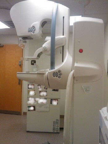 I'm sure all you gadget gals out there can guess what this medical device is. Me and the girls had an appointment for a very "pressing" matter, and when the technician walked out to show my films to the radiologist, I snapped a couple of photos. I had a smashing time as usual, but luckily everything turned out okay. Boyhowdy, you guys don't know how lucky you are that you don't have to endure some of the fun tests that we women do.