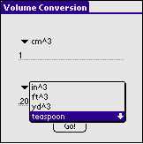A few years went by, then a couple decades, and I still think in gallons, quarts, pints, and ounces. Although there has been only some progress - packaging usually lists both Standard and Metric, for instance - technology has helped bridge the gap in making those pesky conversions between measurements more accessible. There are internet sites available for free conversion, but now you can carry a simple yet useful conversion tool with you on the go. If you are a Palm OS user, then download ConvertCalc, a free conversion app by David Orriss, Jr. of www.codethought.com. You can download it at www.freewarepalm.com.