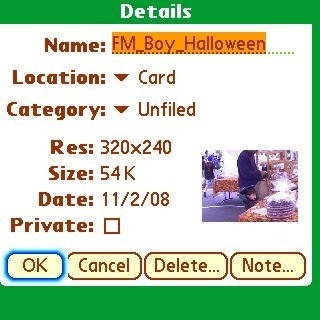 Though I tested it on my Centro, which runs Palm OS® by ACCESS Version 5, SplashPhoto for Palm supports all handheld models running Palm OS 4.0 or later that are capable of displaying 16-bit images. It handles standard (160x160), Hi-Res (320x320) and Hi-Res (320x480) displays. It requires 230k of free memory for the application and 30k per image. And, here's the good part, it works on Macs (Mac OS Version 10.2 or higher) as well as Microsoft Windows machines running Windows Windows ME, NT4, 2000, XP or Vista.