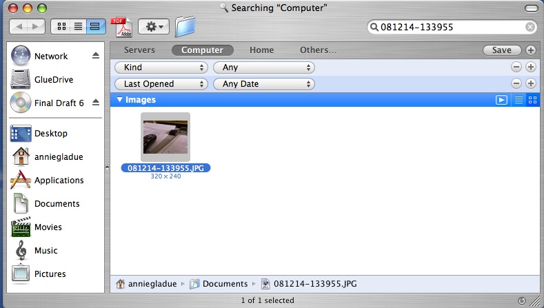 It had landed in the LIBRARY. This is "a Mac thing" which I should be able to change by fiddling with my defaults. The point is, the image moved from my Centro to my Mac without me doing a modified "sneakerware" move. Hoorah!