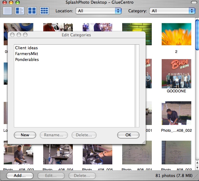 Here's something really cool. The Desktop app makes setting up categories for your photos really easy to do. For testing purposes, I decided to use the SplashPhoto Desktop app to help me organize the images that I planned to include with this story, which consisted of pictures taken with my Centro, screen grabs from the Centro, and screen grabs from my Mac.