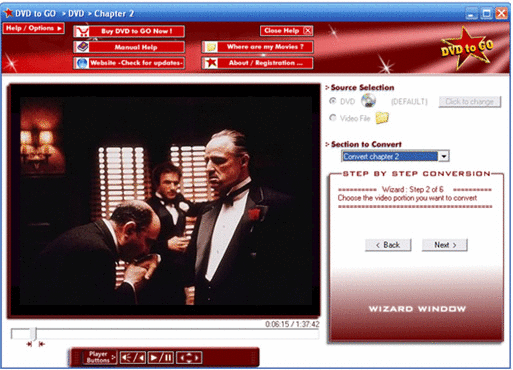 - DVD to GO is highly easy to use with its simple step by step Wizard interface!