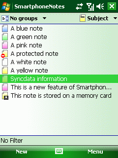SmartphoneNotes 3.0 Pocket PC Edition, by Syncdata, is a powerful text notes organizer for Windows Mobile Classic and Professional. With SmartphoneNotes, you can easily create and manage text notes directly on your mobile device and synchronize them with Microsoft Outlook® on your desktop computer!