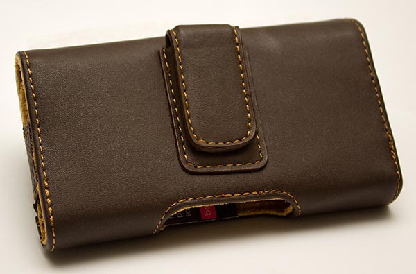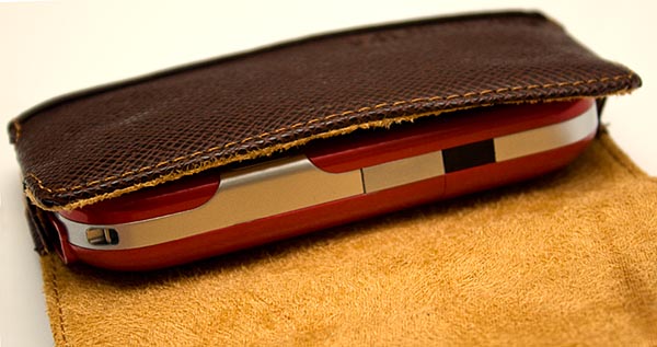 The Bond Street comes in black or brown leather, each with a contrasting suede lining. The lining is soft to the touch, so it isn't likely to abrade the Centro (or Treo Pro, or whatever you entrust to it). The padded sides have strong reinforcement so they don't bend out of shape, and protect the phone from flying objects or prevent damage in (gasp!) a drop. In short, the Bond Street holster is a well built case that beautifully does its duty and protects its charge. It's just like a movie starlet - looks glamorous while doing its job.
