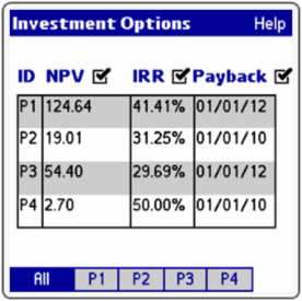 Investment Options is a powerful but easy to use application that will help you compare up to 4 investment alternatives at once.