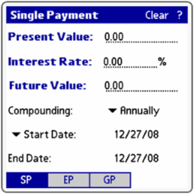 - Single Payment function allows you calculate the Present, Future and Interest Rate value for single investment flow.
