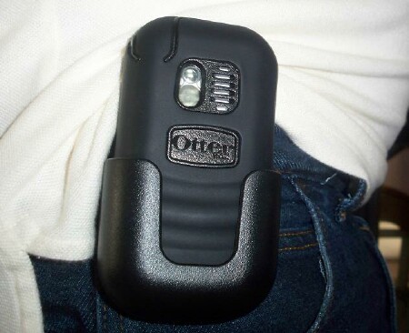 And, it doesn't end there. The case also comes with a hard carrying case with a detachable belt clip. This case is designed so that you snap the case protecting your Centro into this outer case, with the phone facing inward. It just so happens that the top of the outer case exactly covers your touch screen and keyboard areas, protecting your phone even further! You can even feel AND hear the cases interlock, assuring you your phone is securely held into place - I love that added security! The belt clip is also adjustable and has 24 positions into which you can rotate your phone, assuring that you can have your phone ready in any position you desire. Just rotate to the desired position and press and the clip locks into place! Although it only covers the bottom half of your Centro when your phone is locked into place, the silicone skin and inner polycarbonate shell should offer more than ample protection should you happen to drop your case/phone.