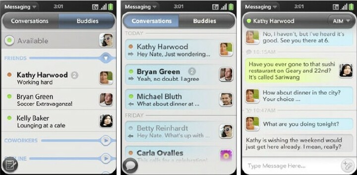 - Combined Messaging - Thanks to Synergy, all your conversations with the same person are grouped together in one chat-style view. (Even if it started in IM, for example, and you want to reply with text.) You can also see whos online right from contacts, and start a new conversation with just one touch.