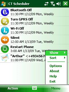 CT Scheduler automatically sends SMS, switches Sound Volume, use Bluetooth / Flight Mode / Wi-Fi, sets call forwarding and does other interesting things at the predefined time.