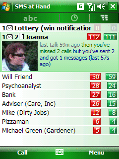 SMS at Hand, by All at Hand Software, is the Windows Mobile text messaging application that consists of two main screens. The first one includes a list of Contacts arranged in a smart way: from the most intensively used to the least. At the very top you always see the entities with new messages. When entering any Contact, you see the whole history of its communication with you, including short text messages and calls which are chronologically presented. The conversation screen provides all details of each item and shows the whole SMS text body without the necessity of unrolling it. Use it as a convenient and immediate way of inputting an SMS. When you input a new message through SMS at Hand, you are not limited to one-line edit box like in most similar messengers. Your application adjusts the input box to fit the text while typing.