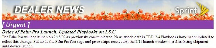The Boy Genius Report has gotten their hands on an internal Sprint newsflash stating that the Treo Pro won't be released on February 15th, and the release date is (TBA) "To Be Announced".