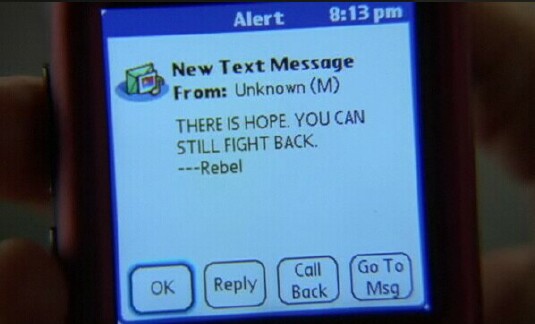 Ryan wrote in and let me know that he'd seen Claire Bennet on "Heroes" using a Pink Centro. I hadn't seen that Centro yet because I was behind on watching the show. So I gladly caught up with the latest two episodes and got to see Claire texting on the Centro. There was a great closeup shot of a text.