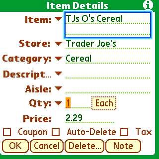 It is easy to make changes on the fly to your list using your Centro. For example, I may notice that the price of TJ's O's Cereal has gone up. Boom... on the spot I can edit that on my list.
