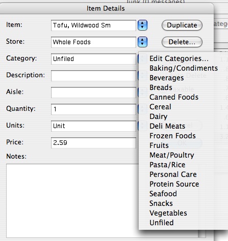To create an entry for the larger package of tofu, all I need to do was hit the Duplicate button and then edit the Item name and details.