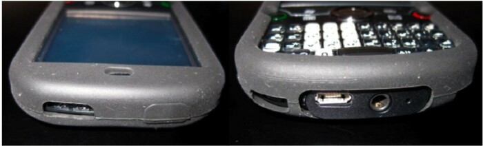 The case protects the edges of the Treo Pro all the way around, yet allows full access to the touchscreen, keyboard, and 5-way navigator. Cutouts on the case give access to the camera on the back, the speaker, microphone, stylus, WiFi button, ringer switch, stylus, headphone jack, and mini-USB port. The power button, volume buttons and side button are enclosed, but have a slightly raised rubber surface to guide your fingertips to them.