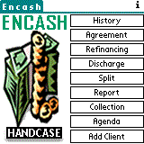 Encash, by Handcase, is a suite of 8 tools which makes it quick and easy to administer and organize collections of clients. For even the largest companies, Encash serves as a complement mobile aide. Structured in History, Agreement, Refinancing, Discharge, Split, Report, Collection and Agenda.