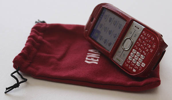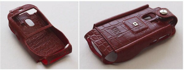 Sena's Leatherskin Croco has a (faux!) crocodile finish in either red or black. The luxurious (real!) leather is extra thin - that's a benefit, not a problem - and it hugs the Centro snugly, snapping on with a minimalist strap that flops across the top. Cutouts by the score leave the phone's controls accessible, while exposing the microphone, the camera's lens and primping mirror, and the IR port on the side. The screen and keyboard cutouts leave precious little material on the front side. Depending on how carefully you twiddle with inserting the phone, the cutouts land pretty close to where they ought to be - except the IR one. It's a smidge off, no matter what.