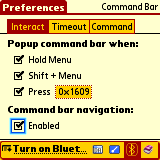 Everything about Palm OS command bar. Set the way of popping up, navigating with 5-way keys, changing timeout, managing icons, assigning shortcuts.