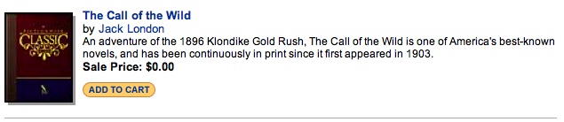 The real fun begins once you get some books downloaded. I decided to browse what was available in eReader's "Free eBook" section and was thrilled to find The Call of the Wild by Jack London. That was a book I always meant to read but never had the chance. Since it was a mere 107KB in size, I added it to my Shopping Cart and proceeded to the Check Out.