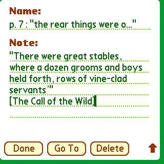 So I tapped Copy Quote and then opened the Note page. I tapped the Add button and then pasted it in using Menu-P command. The Note page had already auto-filled what page the quote came from.