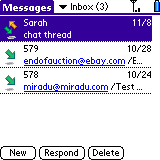 On the GSM Treo, Handspring has made an excellent SMS app. It uses new color icons to show the type of message, and is easy to read. When message go back and forth, like most SMS messages do, it automatically forms an IM like chat complete with emoticons