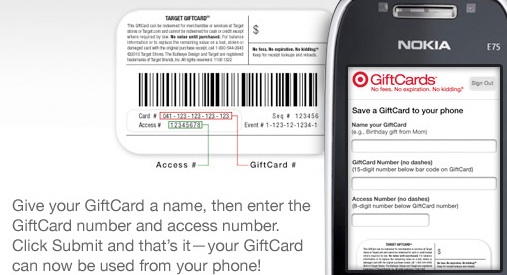 According to the announcement, any guest (that's what they call customers), tech-savvy or not, can save GiftCard information to a PIN-secure account on the Target.com mobile site. Then, at checkout, as long as you have a data plan, you can retrieve the GiftCard barcode for scanning by the cashier.