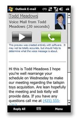 > Enhanced voice mail - Exchange Server 2010 Unified Messaging provides voice mail preview, giving you a text version of your voice mail messages so you can read them without having to call and listen to each.