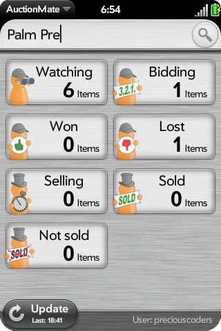 If you are contemplating a Palm Pre or Pixi (with or without the Plus), there is an eBay app available called AuctionMate.