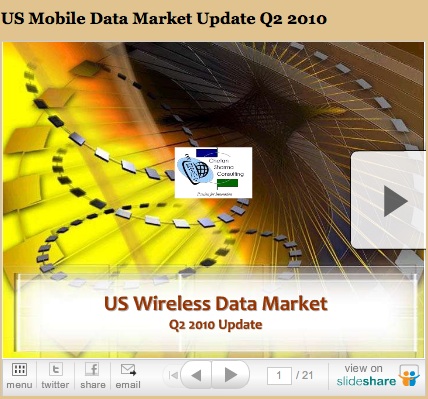According to data compiled by Chetan Sharma Consulting, the U.S. mobile data market grew 6 percent quarter-over-quarter in Q2 2010, exceeding service revenues of $13.2 billion. That's a 22 percent annual increase.