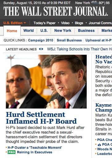 According to a story appearing in the online version of The Wall Street Journal on Sunday, Hewlett-Packard's board decided to oust Mark Hurd Aug. 6 after the chief executive reached a sexual-harassment-claim settlement that directors thought impeded their probe of the claim, according to a person familiar with the board's thinking.