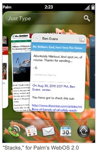 Comment: Palm needs to get devices to market running this new OS pretty quickly. Both the Palm Pre and Pixi are looking long in the tooth. - AL