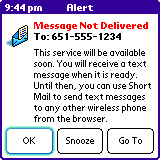 There have been credible rumors that Sprint is almost ready to launch their full two-way sms network soon. On cell phone forums like Howard Chui's Forums people have posted dates of this occurance, but the most reliable rumor is the dialog one gets when one tries to send an SMS on a Sprint Treo 600 (see below).