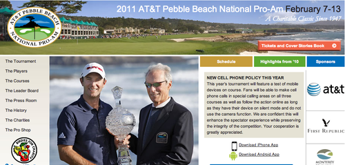 Today, AT&T announced attendees of the 2011 AT&T Pebble Beach National Pro-Am (taking place this weekend) will be able to stay connected to their worlds through their mobile devices across the participating golf courses --for the first time in AT&T golf sponsorship history.