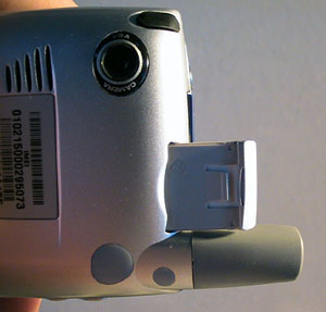 The SDIO card slot is located just to the right of the antenna at the top of the Treo. There are two problems with the slot. The first is that SD cards cant actually go in all the way; there is (depending on the card) a couple of millimeters of it standing out above the Treo. Many users, myself included have found that when the Treo is in your pocket the cards may sometimes pop out. It is a minor annoyance that could have been fixed with a (slightly) deeper slot. The other problem with the SDIO slot is the position of it. Already many SDIO peripherals are not compatible with the Treo 600 because the antenna blocks their ability to fit into the slot. Take Veos new 1.3 megapixel digital camera card, or iBizs pocket radio. Both of these units do not work with the Treo 600 because of their shape. Other problems have cropped up to; Sandisk has stated that the Treo 600 may not be able to provide enough power to the SD slot to power a Wifi card. Either Handspring or the third party manufactures are going to have to change their ways for Treo 600 users to fully benefit from the SDIO slot.