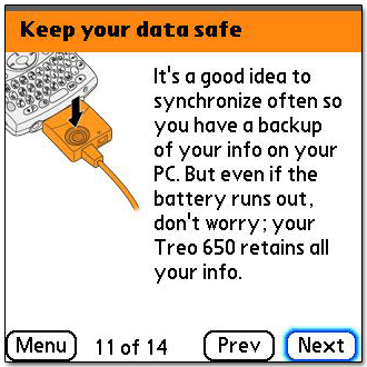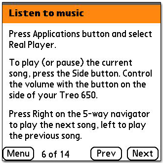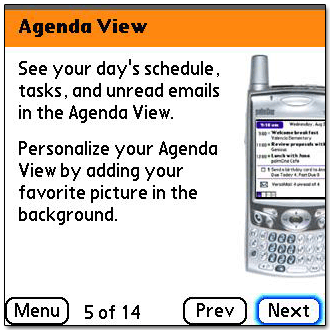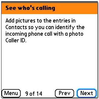Quick Tour Snapshot. The Treo comes with a full tutorial application, this is a sample screenshot from the "Top Ten Fun Features page".