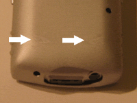 The case also has some rubber lines in certain areas that makes it easier to grip the case. The feeling of the case is different than the Aluminum Hard Case, which has amore cold and metallic feeling to it. The Open Hard Case's casing seems to have been lightly coated with a rubber spray to help prevent sliding and make the case easier to hold; however, over time, this coating does rub off. I carry my Treo mostly in my front pocket, and after two weeks of use, the case has worn away on the front near the ear hole and on the bottom of the door, and on the back near the HotSync port.