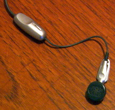 As I mentioned earlier, this is an odd combo unit. The pod like device clips onto a shirt pocket and then a wire zips up to the ear. The LCD on the pod gives you full status including caller ID. One great feature is that you can scroll through the call list to redial numbers. The microphone is on the dongle that floats off the wire near your mouth.