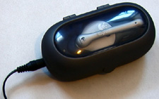 One of the most striking things about the Logitech Mobile Pro is the charging/carrying case. If Walt Disney is cryogenically frozen somewhere in the heart of Disneyworld, then this charging case is perfect example of what his freezing chamber would look like. The earpiece rests inside and the case then closes around the unit. The charging case is designed not only for charging but for travel as well—magine a bulked up eyeglass case with a clear top. The case is extremely tough and durable, and you should feel comfortable tossing the whole chamber into a briefcase or bag for travel. The earpiece is rated for 7 hours of talk time.
