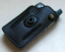 As the front and sides of the case are clear plastic, the case is pretty much invisible, kind of like Wonder Womans plane I suppose. The only giveaway is the black leather strip that runs from the back of the case to the front to loop around the antenna to hold it in place. In the back of the case, the thick leather piece is an extremely strong belt clip nub.